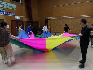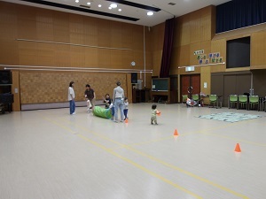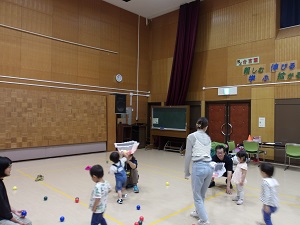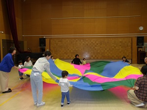 滝本 泉先生による、音楽に合わせたリズムダンスや遊具を使っての遊びで、親子のふれあいの時間を過ごしてもらいました。始めは緊張していたお子さんたちも体を動かすうちに楽しそうに参加してくれました。