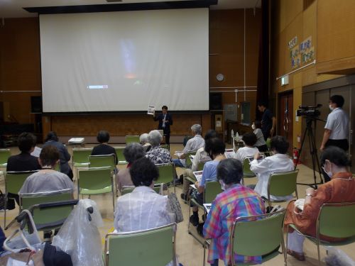 令和7年7月15日(火)に旭公民館において第3回あさひ寿大学を開催しました。台風が北海道に上陸し、激しい雨が降った日でしたが、43名(男性8名、女性35名)参加し、「介護予防・認知症予防の話」の講座を行いました。