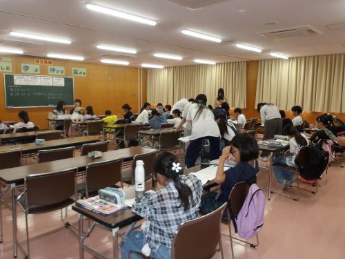 帰りの会では、参加した小学生・ボランティアが2日間を振り返り、自分の思いを語りました。2日間ではありますが、寺子屋で過ごした生活は、学校生活では得られない貴重な体験となったと思います。アンケート用紙には、ぼぼ全員の小学生とボランティアが「参加してよかった」「また参加したい」と回答していました。