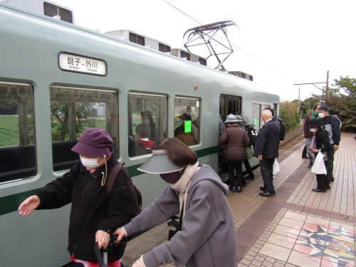 昼食をとり、おみやげを買った後、銚子電鉄に乗車しました。犬吠駅から銚子駅までのどかな電車の旅を楽しみました。