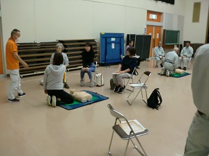 講義の初めには、AEDが普通に使えない以前に在れば助かったかもしれない多くの方が映像で紹介され、参加した人も一層真剣に講習に取り組んでいました。