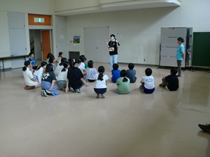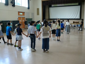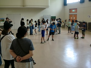 その後、四子連リーダースの方々に、仲間づくりのレクリエーションをして頂きました。初対面の子どもたちも多く、最初は緊張している様子も見られましたが、楽しく活動をしていく中で徐々に打ち解けて盛り上がりました。