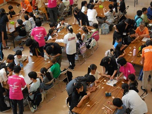 この寺子屋は、市内の小学生が、高校生や中学生を中心としたボランティアの支援で、学習するものです。