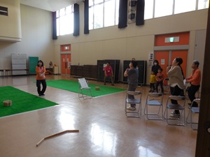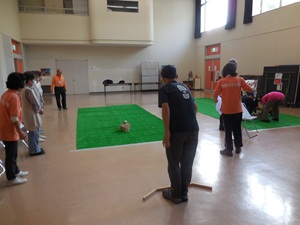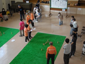 四街道市レクリエーション協会の方々からルールを学んだあと、早速チーム戦を行いました。