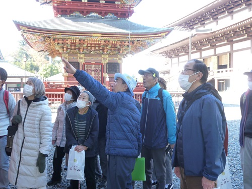 快晴の中、みなさんわくわくした気持ちでバスに乗り込みスタートしました。成田山新勝寺では、写経体験からはじまりました。手を清め、心を落ち着かせ、一人一人思いを込めて筆を走らせていました。次に、座禅、法話と資料を使ってわかりやすく説明していただきました。その後、お護摩祈祷を最前列で見学しました。昼食では、みなさんが楽しみにしていた修行膳(精進料理)をいただきました。大浦ゴボウの大きさに驚きながら、赤飯もおいしくいただきました。自由時間には、各々境内の紅葉を楽しむことができました。なごみの米屋で買い物を済ませ、最後の目的地、三里塚御料牧場記念館では、天皇・皇后両陛下がヨーロッパ各国をご訪問の際利用した飛行機内の調度品が展示されていました。三里塚防空壕の中がとてもしっかりしたつくりで驚かされました。たくさんのことを学ぶことができた、また、親睦を深めることができた長寿大学館外学習でした。